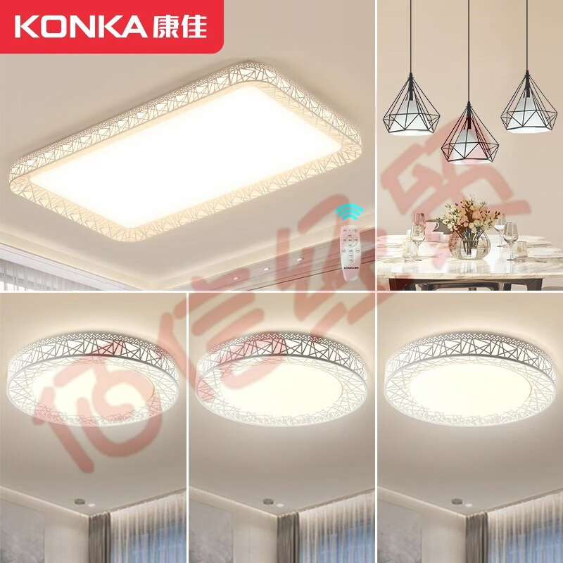 康佳(KONKA)客廳LED吸頂燈臥室書房燈簡約中式風鳥巢燈具全屋套餐 織暉 【織暉】三室兩廳帶餐吊燈 自營