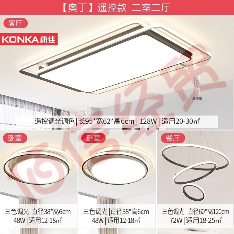 康佳(KONKA)吸頂燈后現代高端超薄客廳臥室餐廳燈具燈飾全屋套餐 奧丁 【奧丁】兩室兩廳 自營