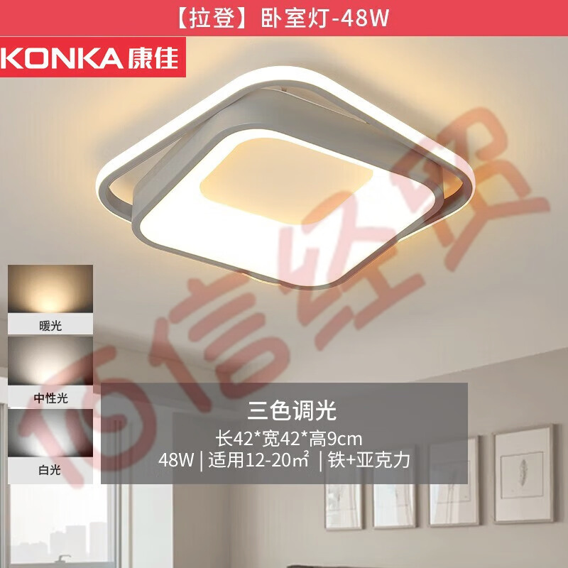 康佳(KONKA)照明LED客廳大燈吸頂燈餐廳臥室全屋燈具套餐 48瓦-三色調(diào)光方臥室燈 自營(yíng)