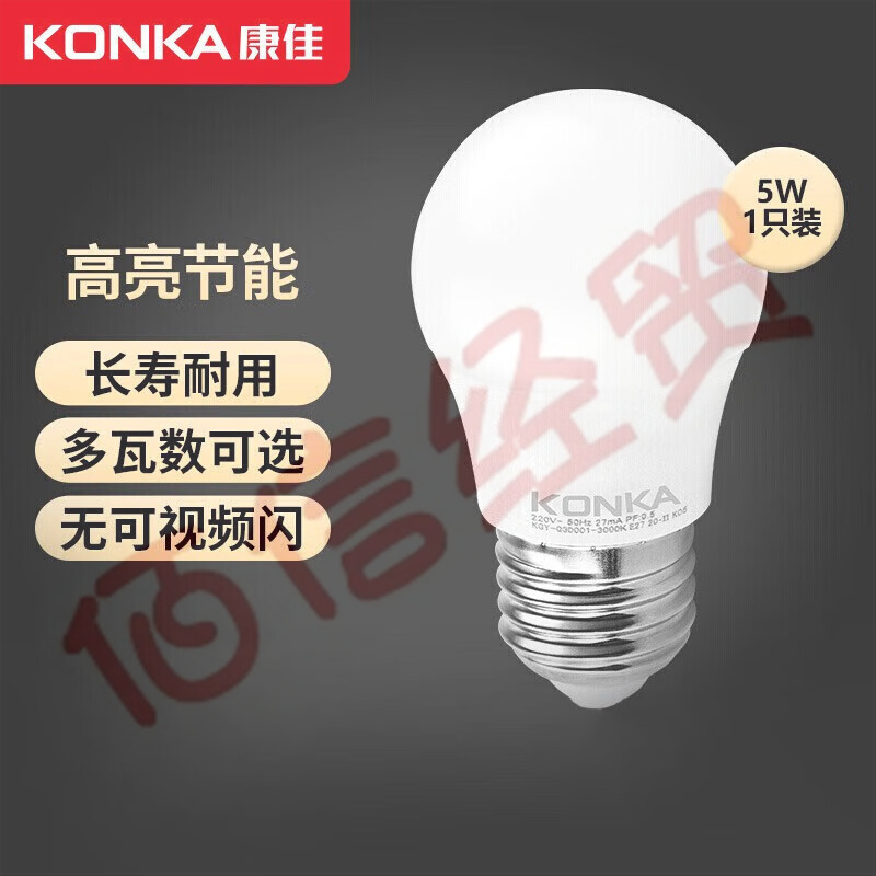 康佳(KONKA)led燈泡E27大螺口高亮節(jié)能燈泡家用商用省電球泡光源 5W 6500K-單色白光 自營(yíng)