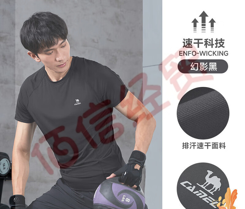 駱駝戶外健身速干T恤男士2023夏季吸汗透氣百搭跑步圓領(lǐng)短袖 J13BA40024,幻影黑,男 XXL 自營