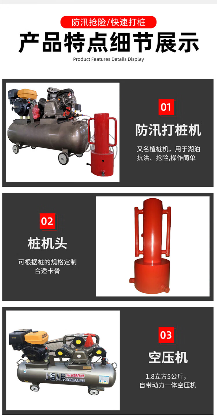 利晨便攜式氣動汽油打樁機植樁機河堤防汛抗洪搶險光伏建筑防護欄木樁 自營