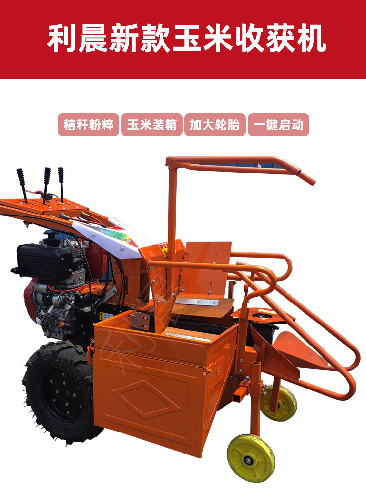 利晨單行收玉米收割機(jī)小型家用神器收獲機(jī)扒皮秸稈粉碎還田一體機(jī)直連 自營