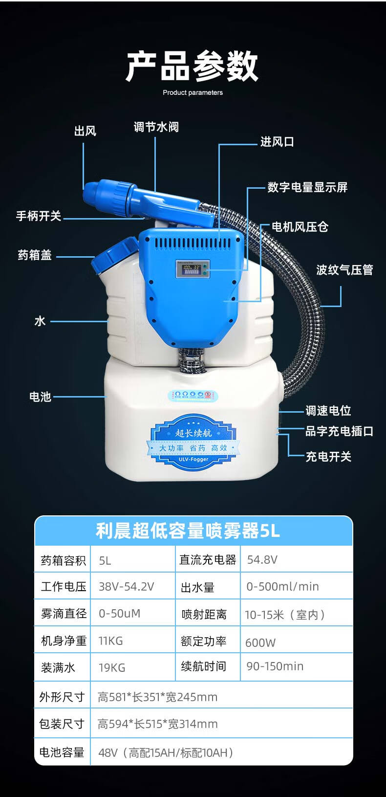 利晨鋰電背負(fù)式超低容量氣溶膠噴霧器消殺消毒冷霧打藥機迷霧噴霧機 自營
