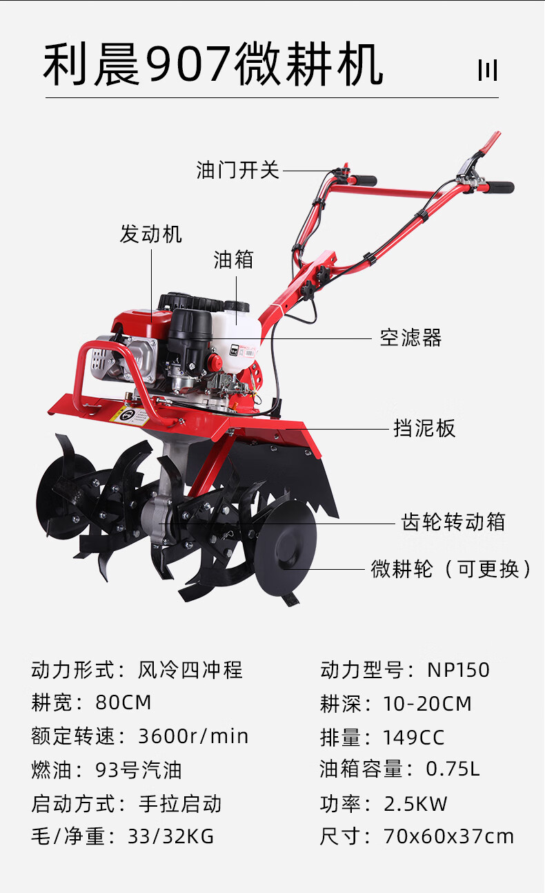 利晨宗申NP150汽油微耕機(jī)農(nóng)用犁地翻土松土開(kāi)溝機(jī)耕田翻地耕地旋耕機(jī)(主機(jī)+旋耕刀+輪胎+開(kāi)溝器+輪胎) 自營(yíng)