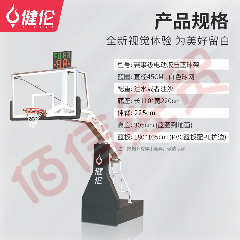 健倫(JEEANLEAN)JLGAA61 籃球架 成人訓(xùn)練比賽標(biāo)準(zhǔn)電動液壓籃球架(含防撞包)