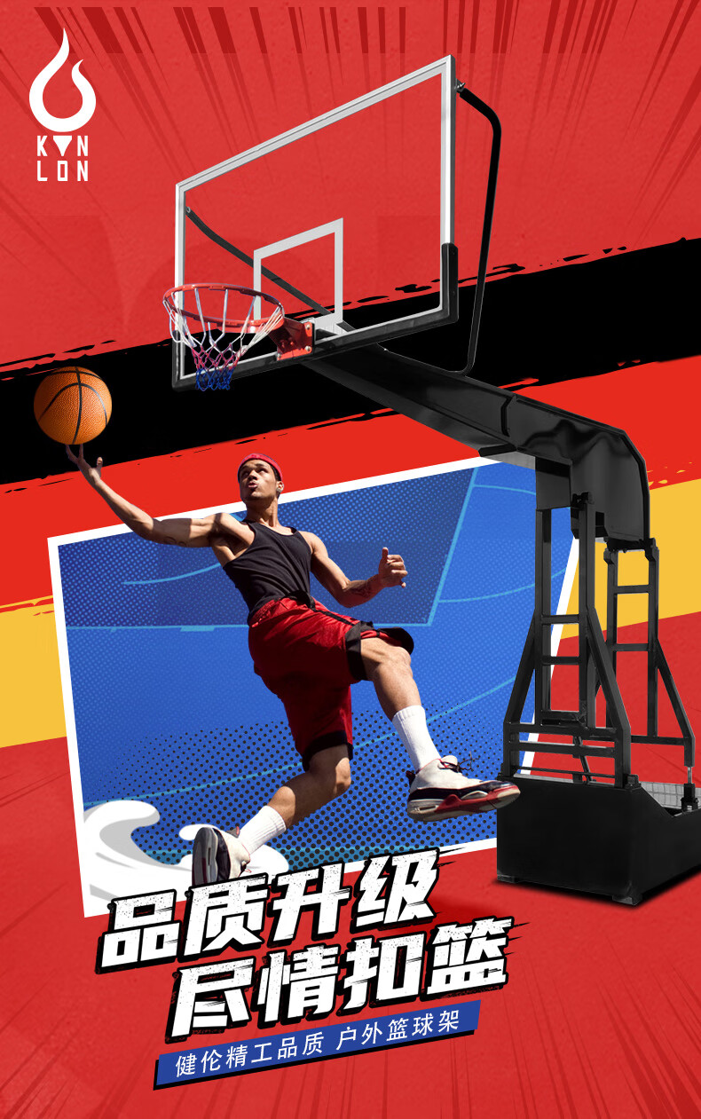 健倫(JEEANLEAN)JLAA167籃球架 成人戶外移動學(xué)校訓(xùn)練籃球架 手動液壓籃球架 自營