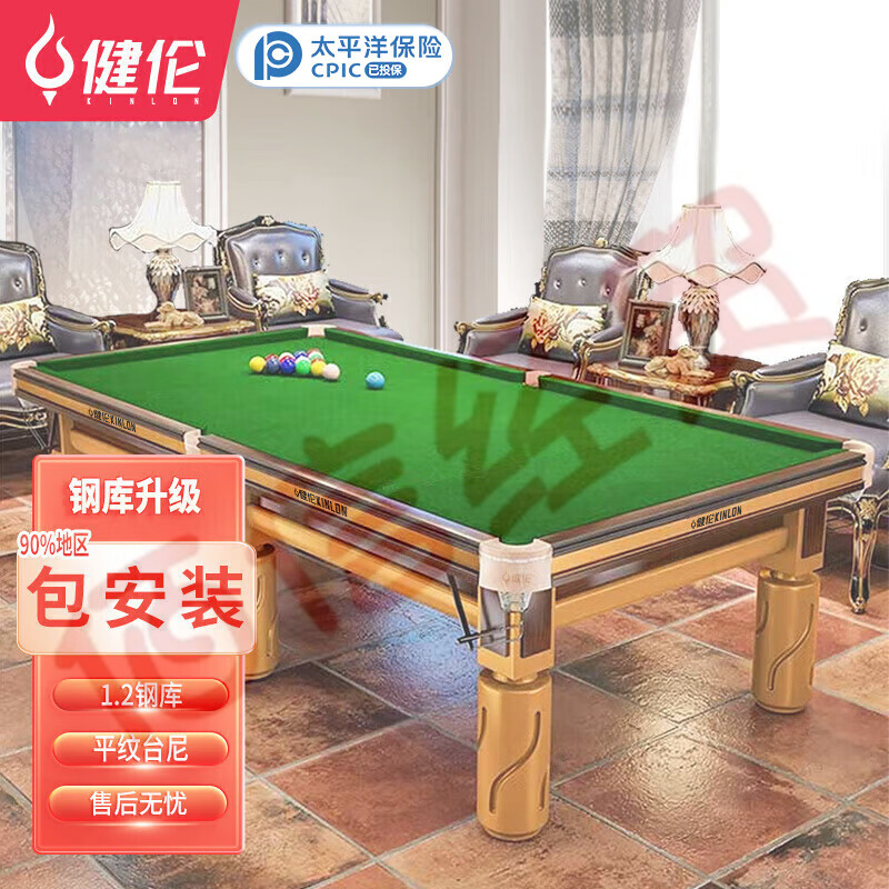 健倫臺(tái)球桌 旋風(fēng)腿 標(biāo)準(zhǔn)九尺家用高端美式黑八 采購(gòu)款JLAB126 自營(yíng)
