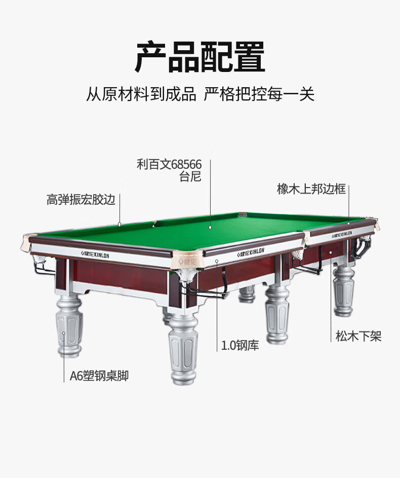 健倫(JEEANLEAN)臺(tái)球桌鋼庫(kù)銀腿標(biāo)準(zhǔn)九尺美式黑八JL-ZQT-A5S 自營(yíng)