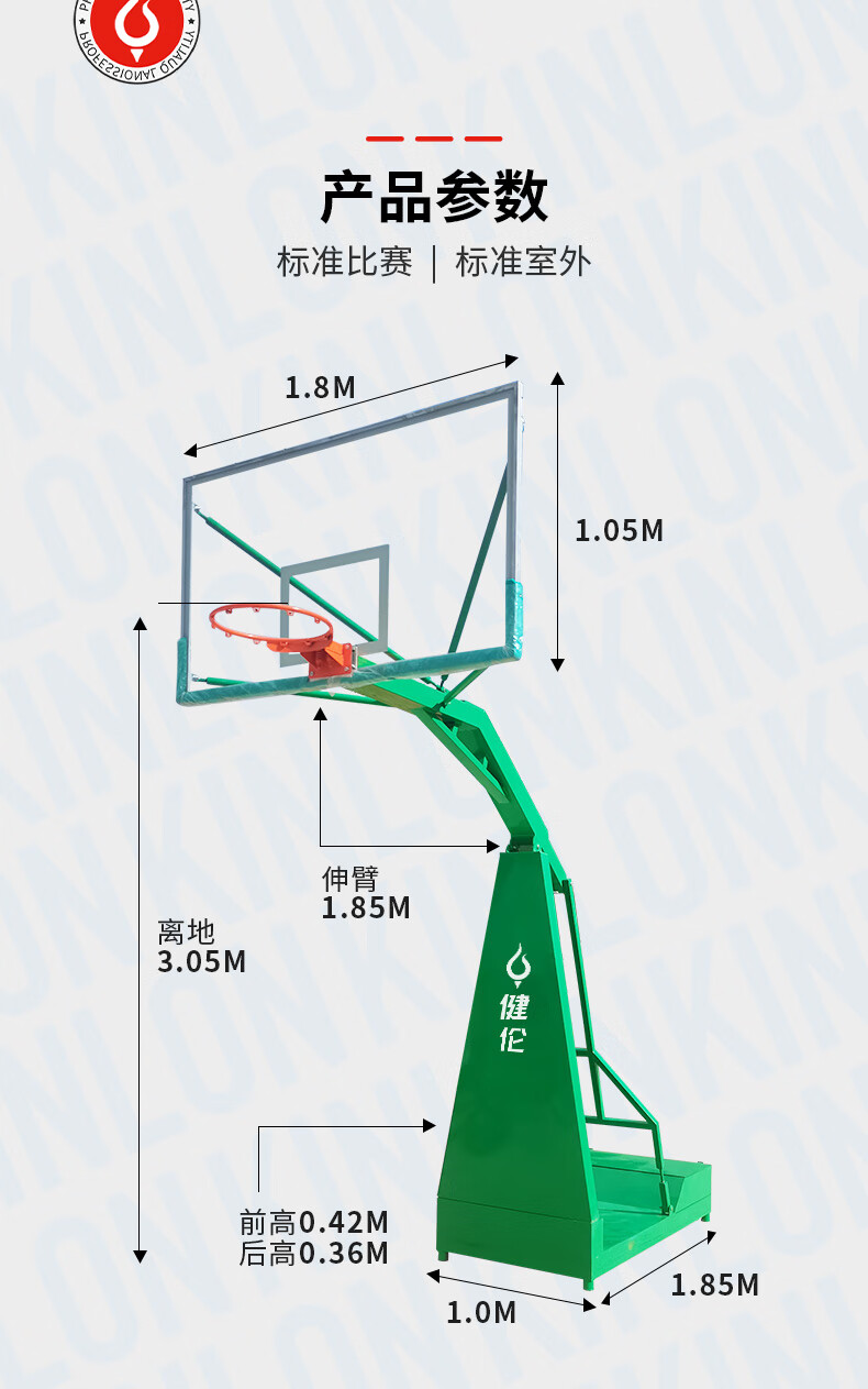 健倫(JEEANLEAN)JLAA163比賽訓(xùn)練專用加厚加粗立柱升級(jí)款凹箱籃球架/只 自營