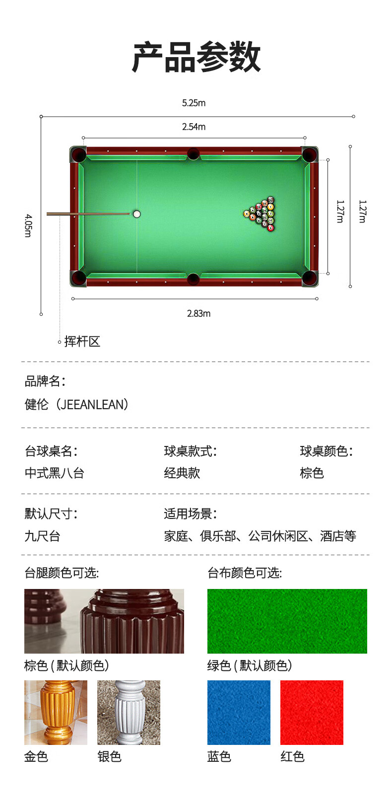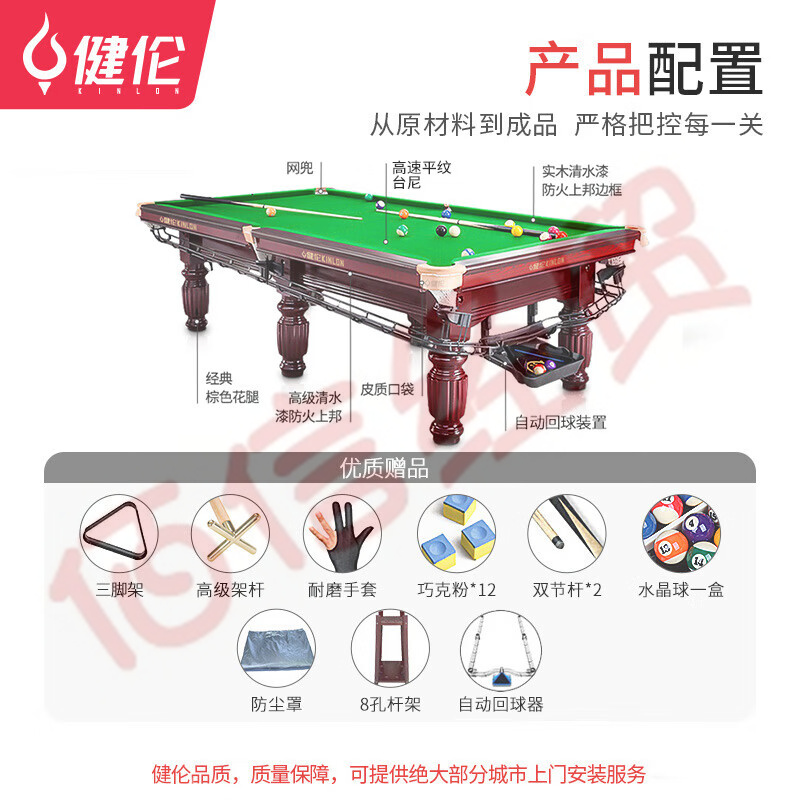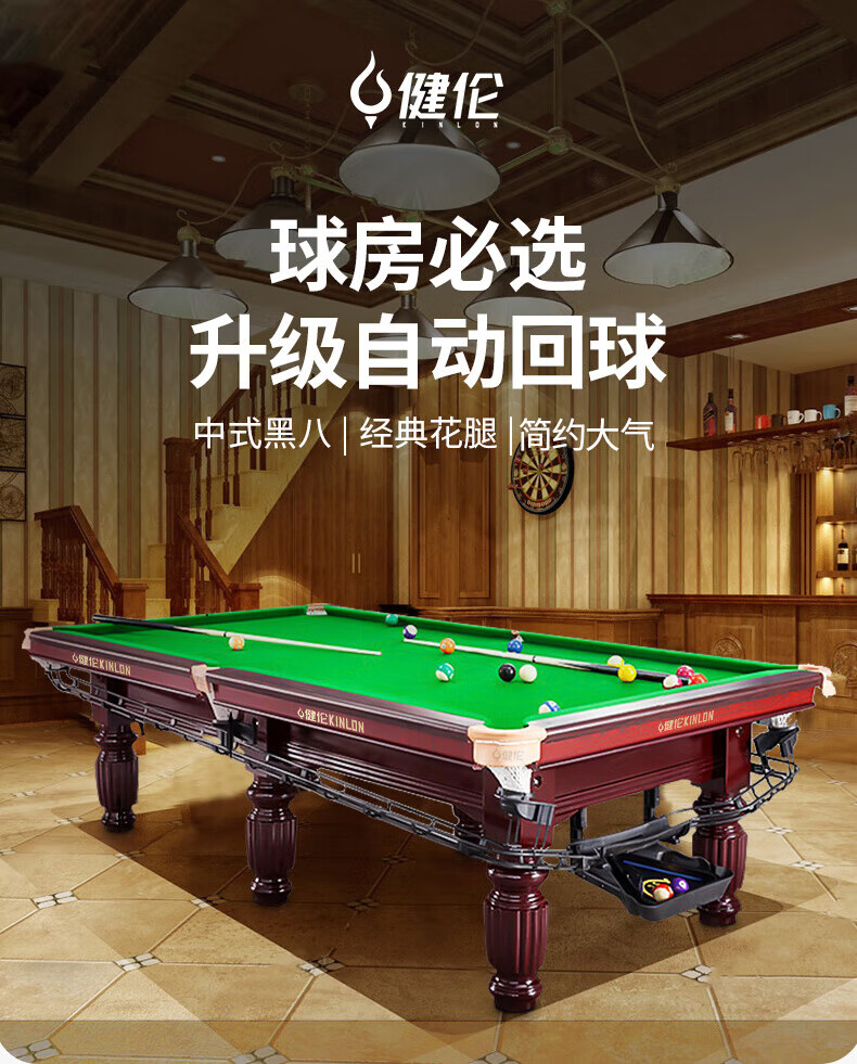 健倫(JEEANLEAN)臺(tái)球桌中式黑8球房家用球桌成人標(biāo)準(zhǔn)美式黑8 JL-S10 自營