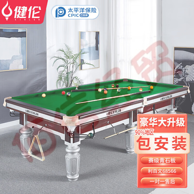 健倫臺球桌 鋼庫銀腿 標(biāo)準(zhǔn)九尺家用高端美式黑八 采購款JLAB128 自營