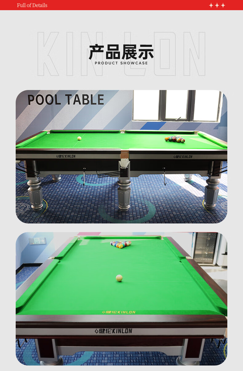 健倫(JEEANLEAN)JLAB133 臺球桌 鋼庫銀腿 九尺家用高端美式黑八 全包采購款 自營