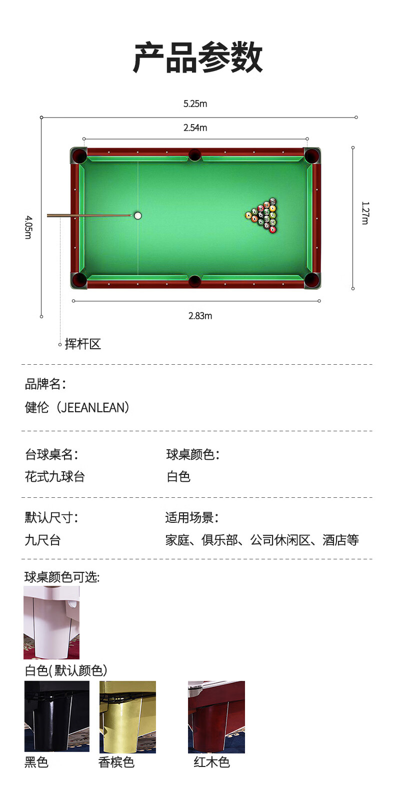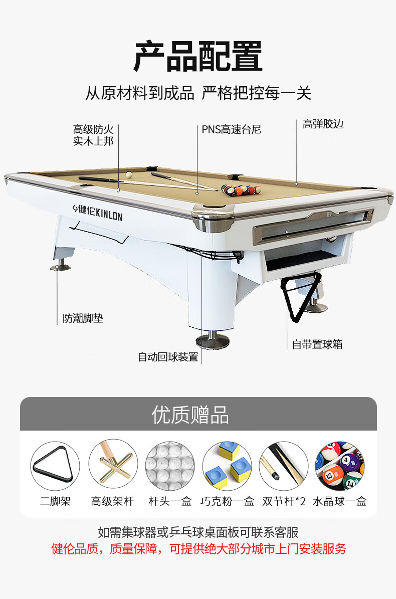 健倫(JEEANLEAN)JLAB135 美式九球臺球桌標(biāo)準(zhǔn)成人桌球家用比賽標(biāo)準(zhǔn)臺球桌 自營
