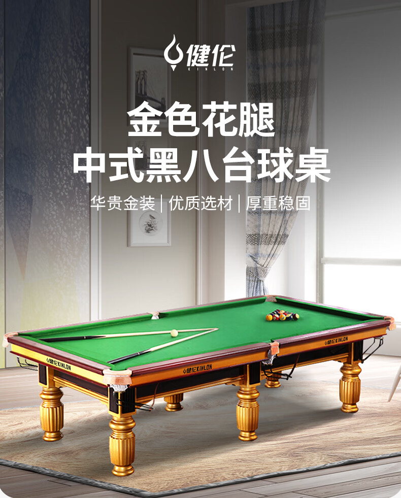 健倫臺(tái)球桌鉆石級(jí)頂配 九尺家用高端美式黑八 全包采購(gòu)款JLAB129 自營(yíng)