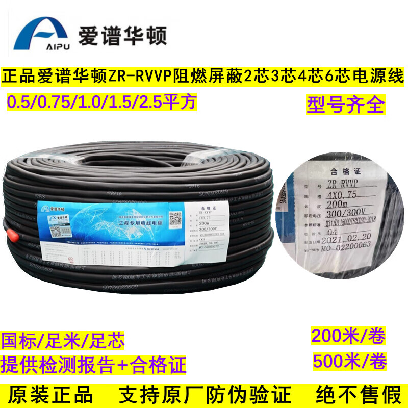 愛譜華頓RVVP2芯3芯4芯6芯8芯0.5/0.75/1.0/1.5/2.5/4/6電源線,200米/500米一盤,原裝,檢測(cè)報(bào)告合格證齊全,國(guó)標(biāo)無氧銅線徑 大品牌質(zhì)量,!值得信賴!