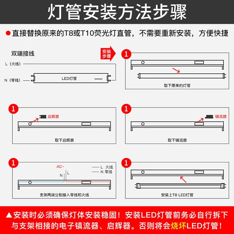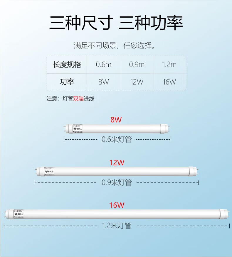 公牛(BULL)LED節(jié)能燈日光燈家用長條照明T8燈管0.6米熒光燈光管燈棒8W 16w1.2米白光 自營