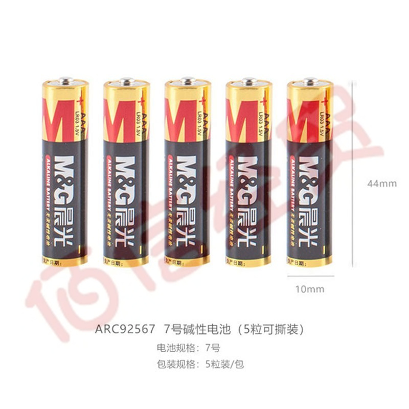 晨光(M&G) 電池五號七號電池兒童玩具遙控器鼠標(biāo)電池5號7號無汞堿性計算器電池辦公用品 7號堿性電池(5粒可撕裝)ARC92567 自營