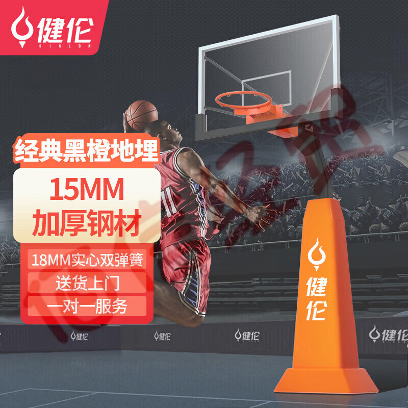健倫(JEEANLEAN)JL-2704籃球架 標(biāo)準(zhǔn)成人戶外移動地埋式籃球架 黑橙款 自營