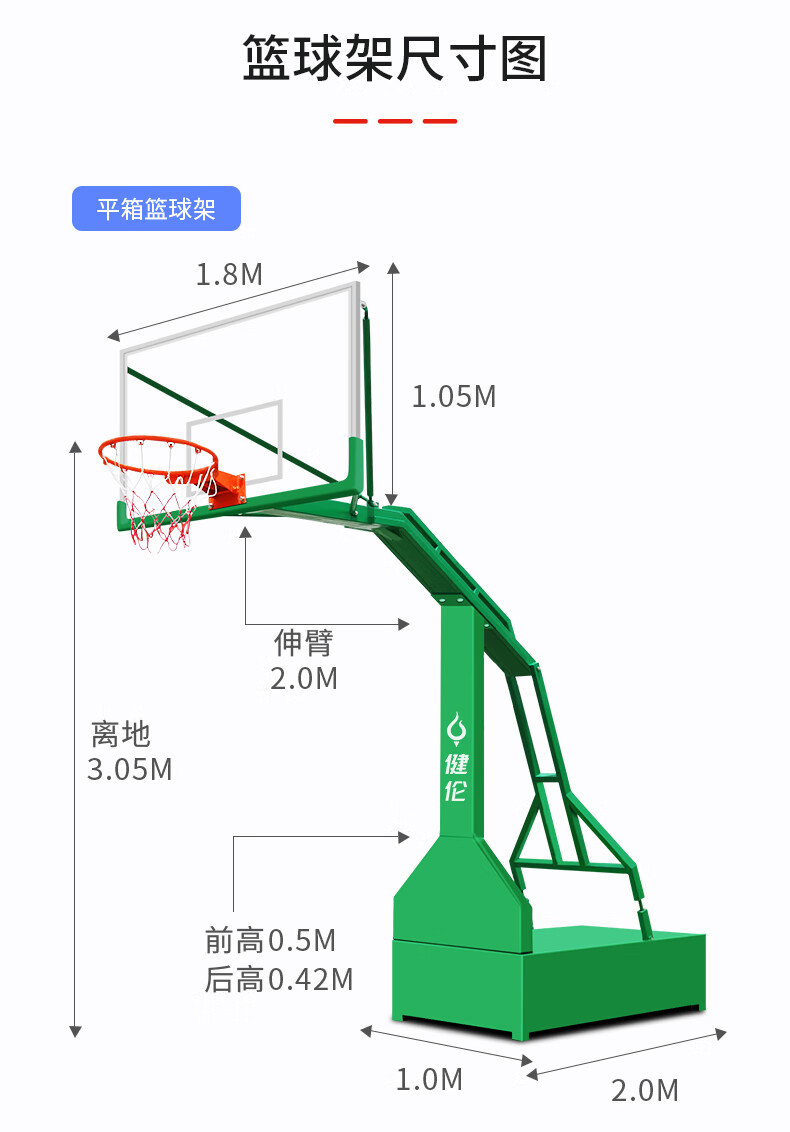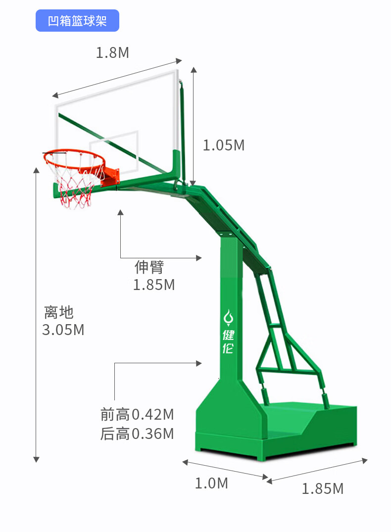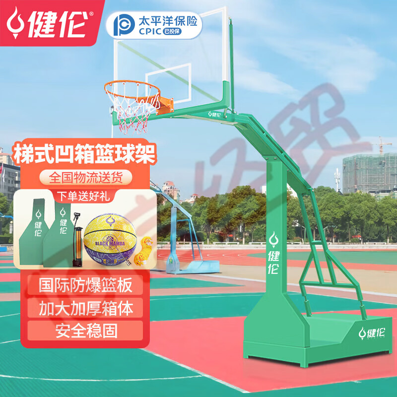 健倫籃球架成人戶外標(biāo)準(zhǔn)籃球框室外移動(dòng)凹箱球架2支(免費(fèi)安裝) 自營(yíng)