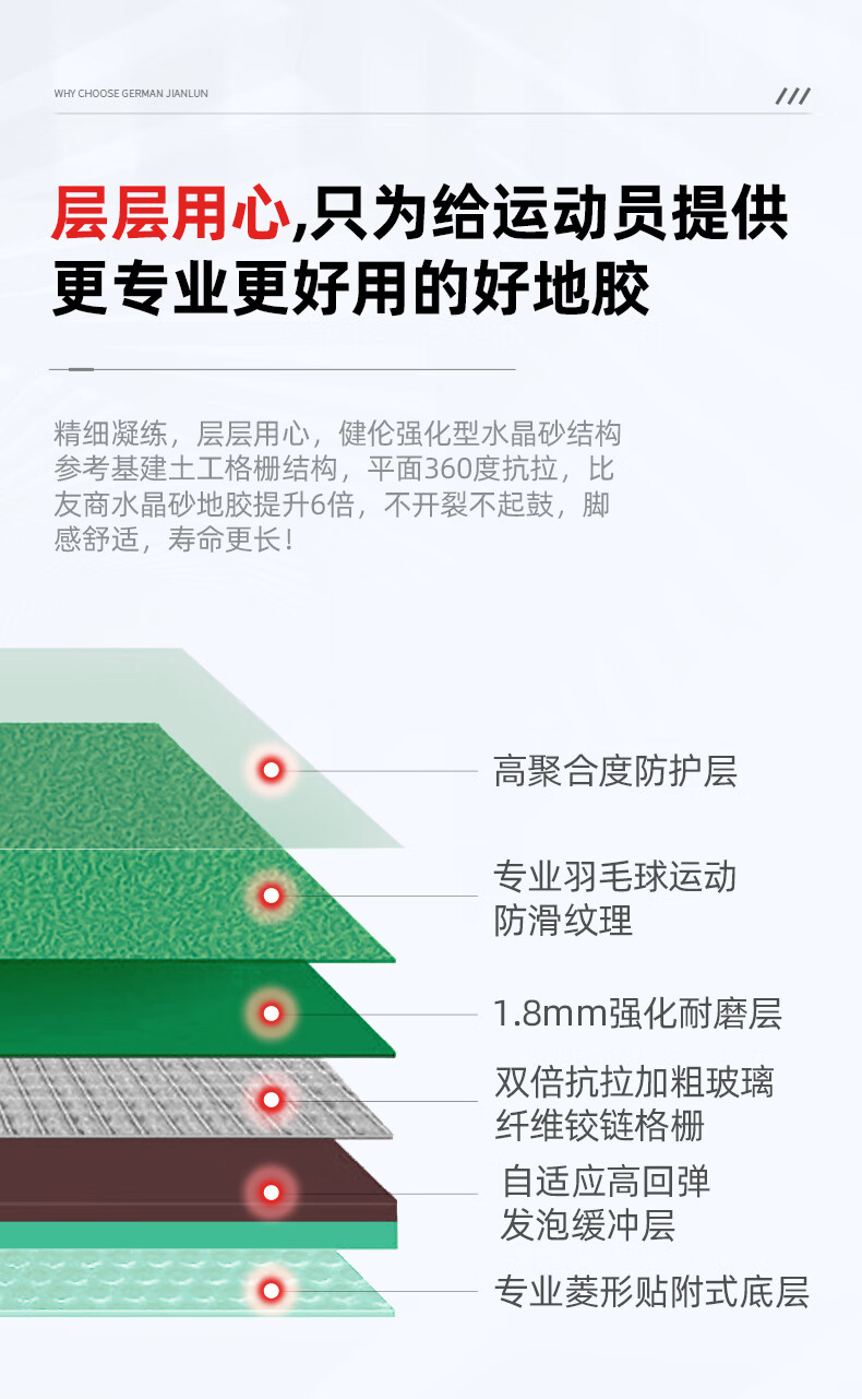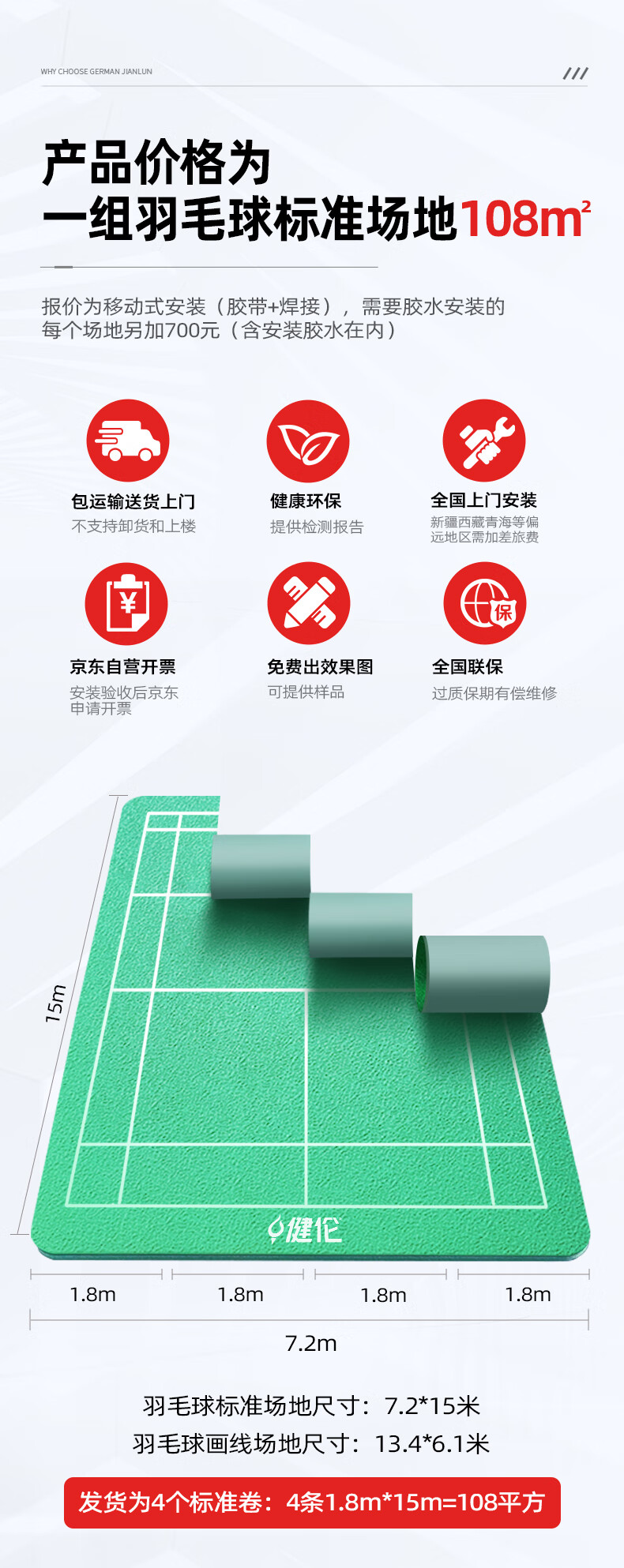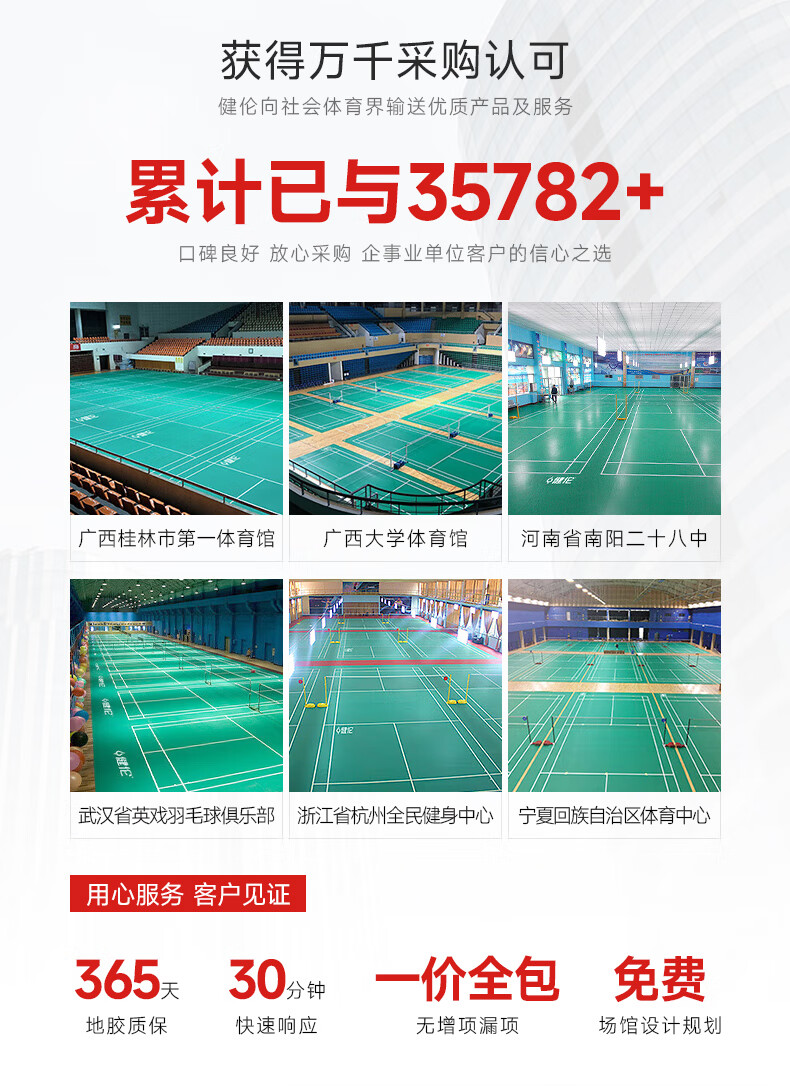 健倫羽毛球場運(yùn)動地膠室內(nèi)球館專用運(yùn)動地墊安裝升級PVC水晶砂5mm 自營