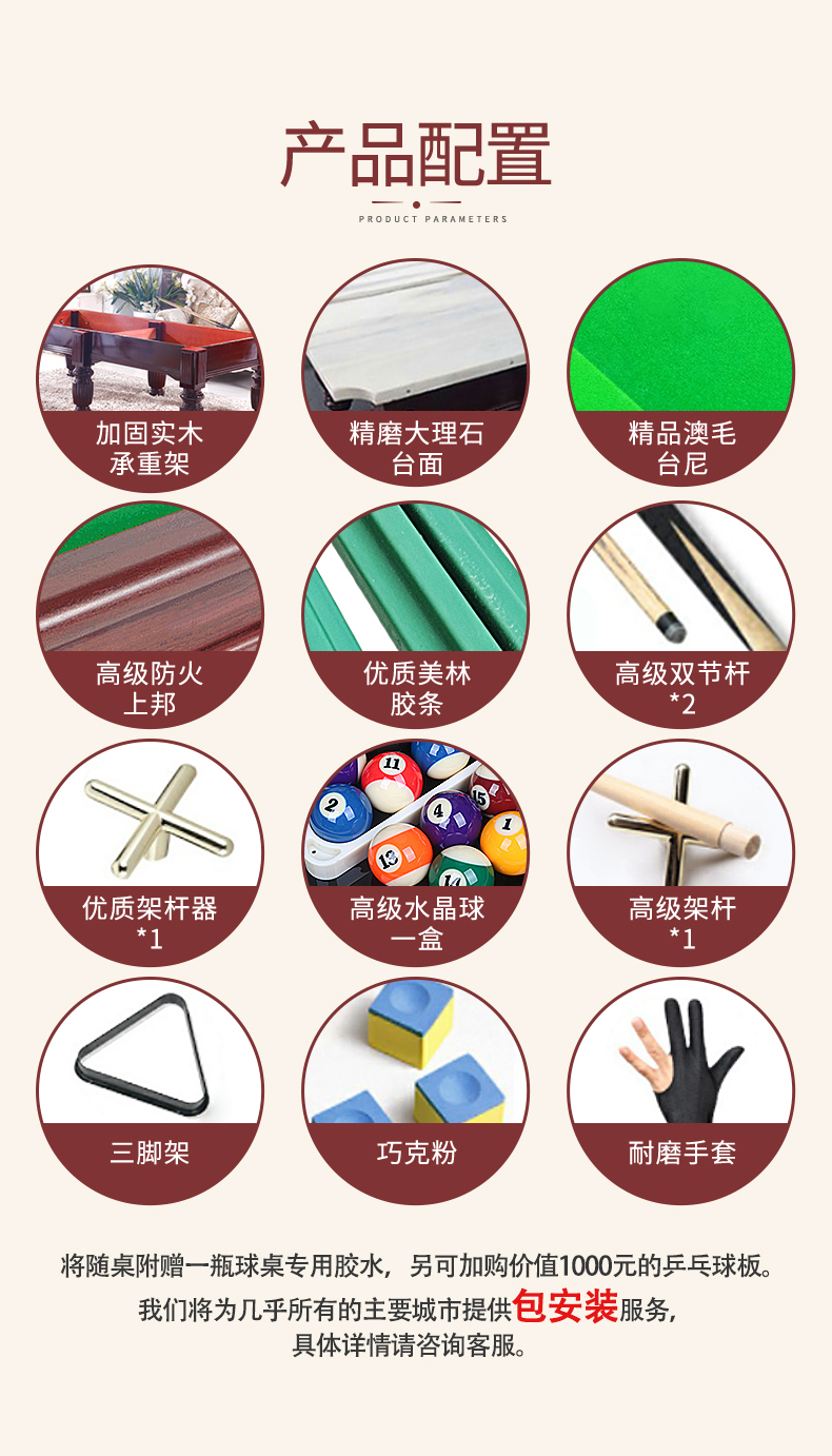健倫(JEEANLEAN)JLAB138標(biāo)準(zhǔn)黑八臺(tái)球桌大理石家用成人桌球臺(tái) 自營(yíng)