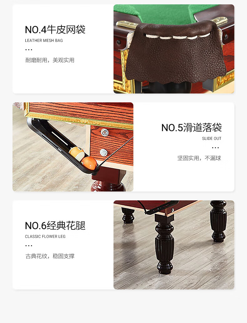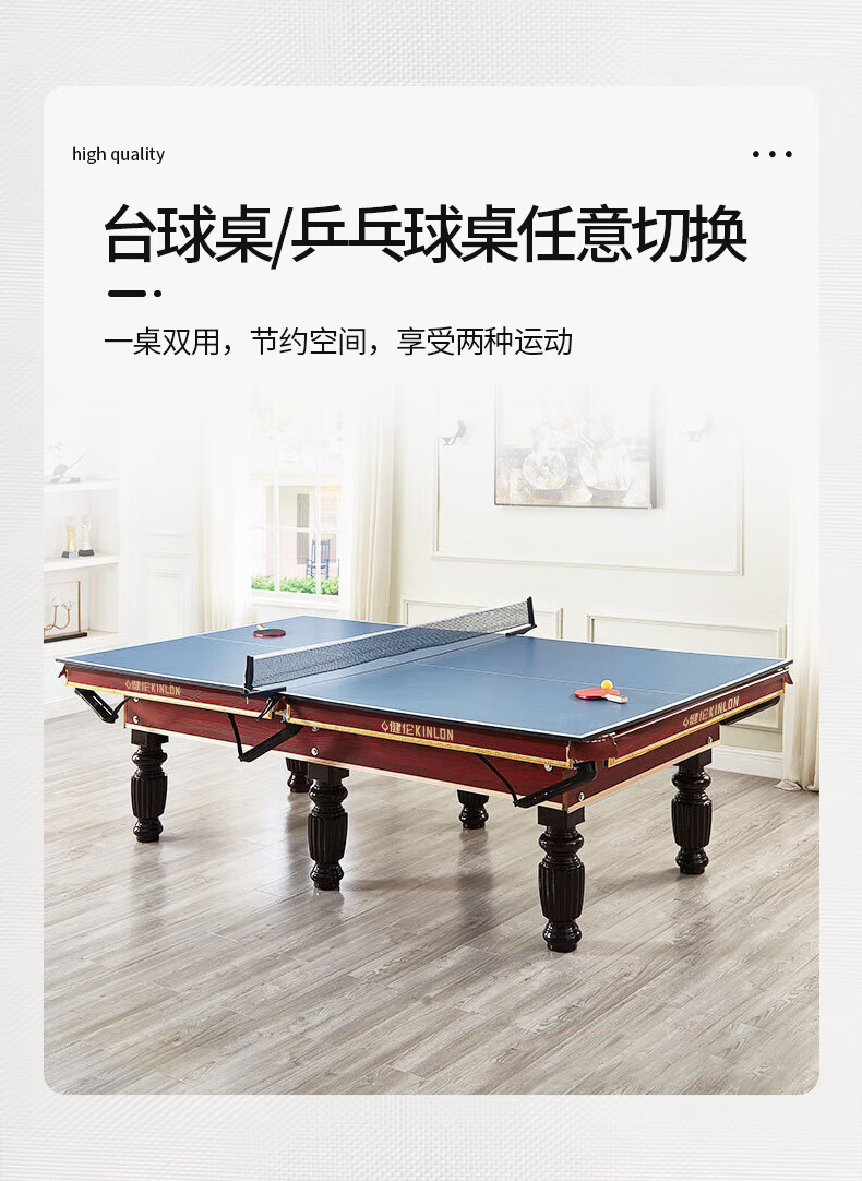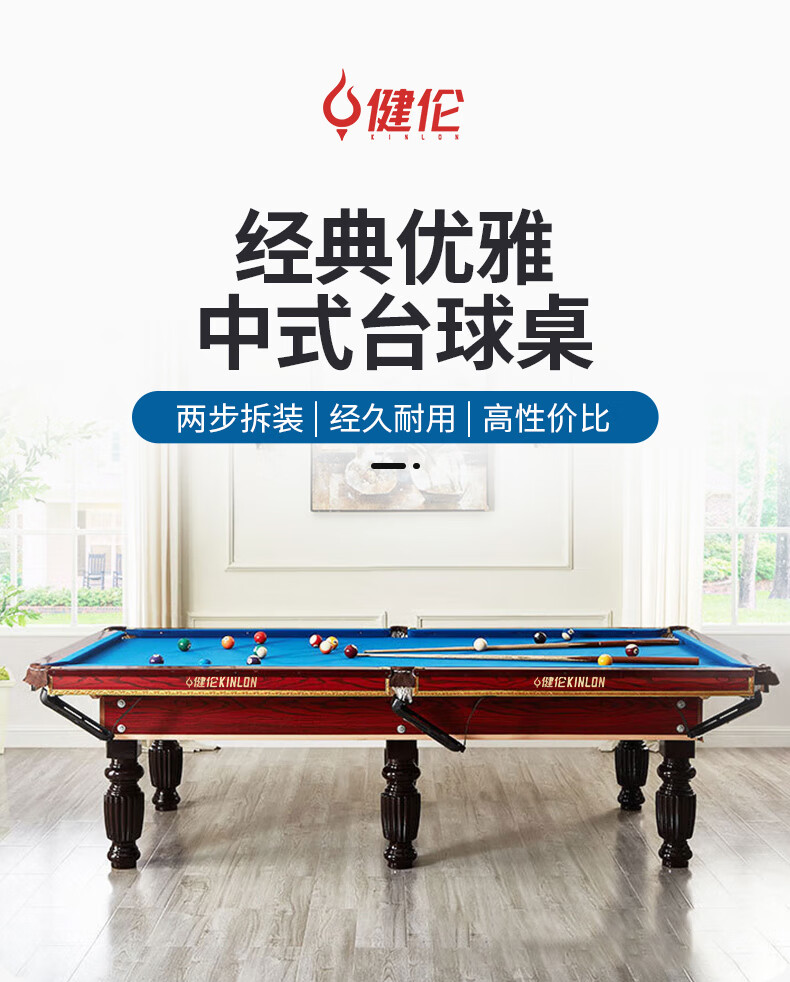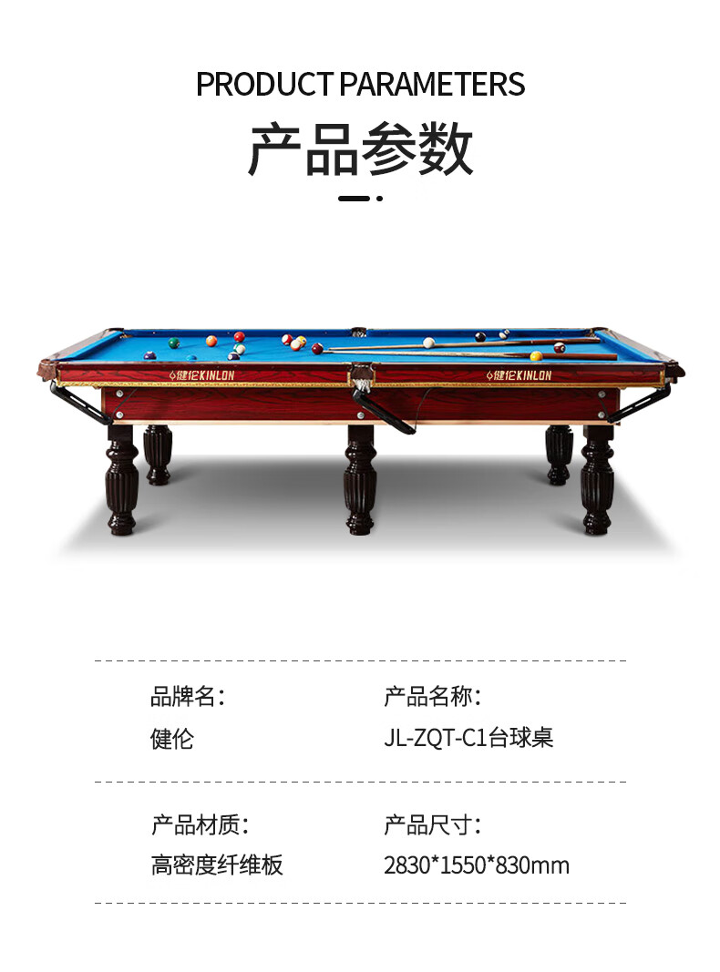 健倫(JEEANLEAN)JLAB134臺(tái)球桌高密度板 九尺家用高端美式黑八 高質(zhì)量采購款 自營