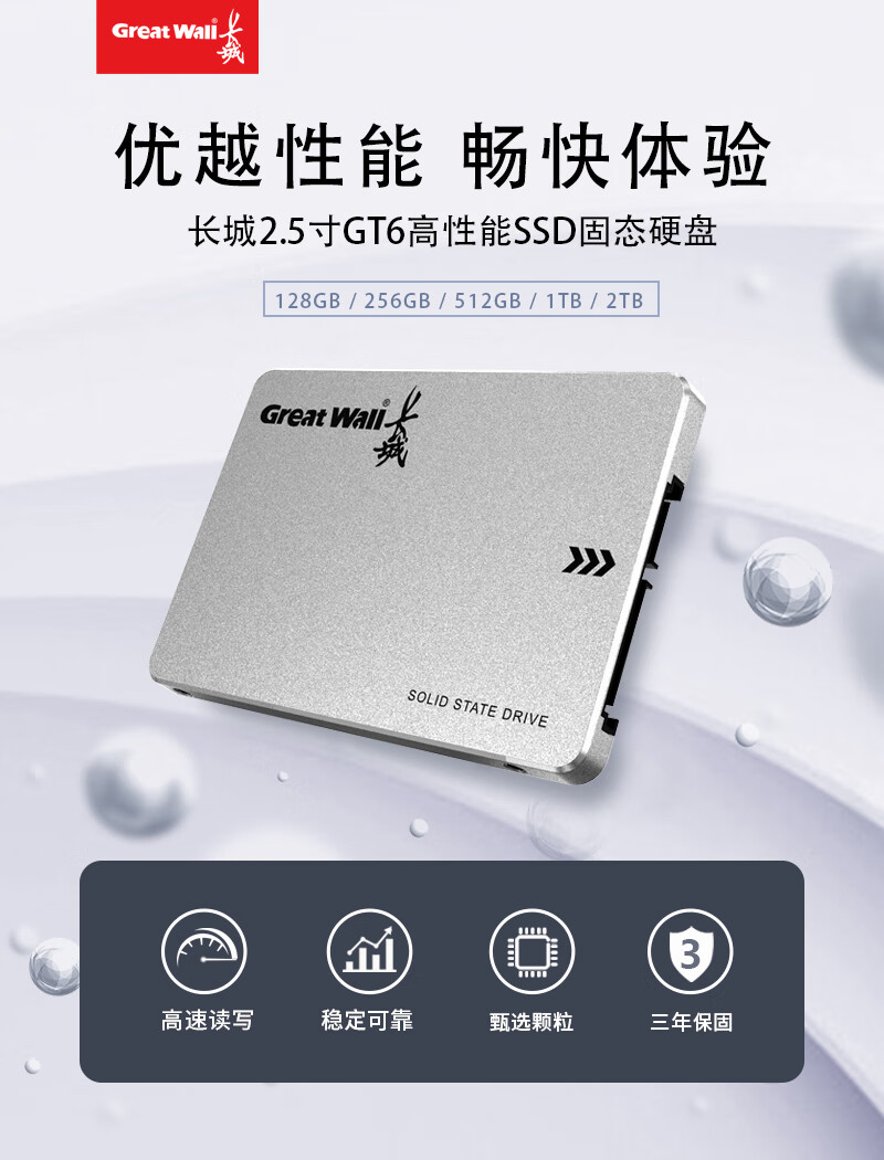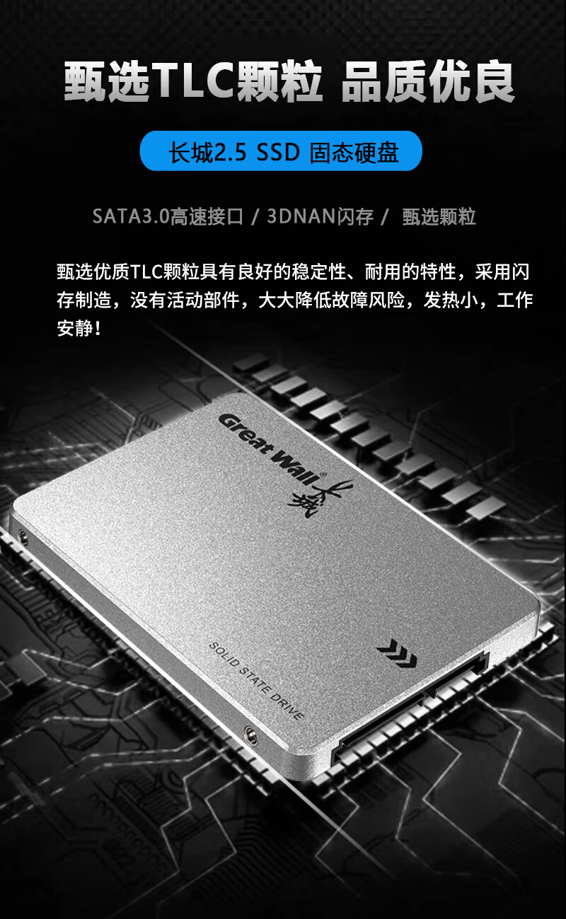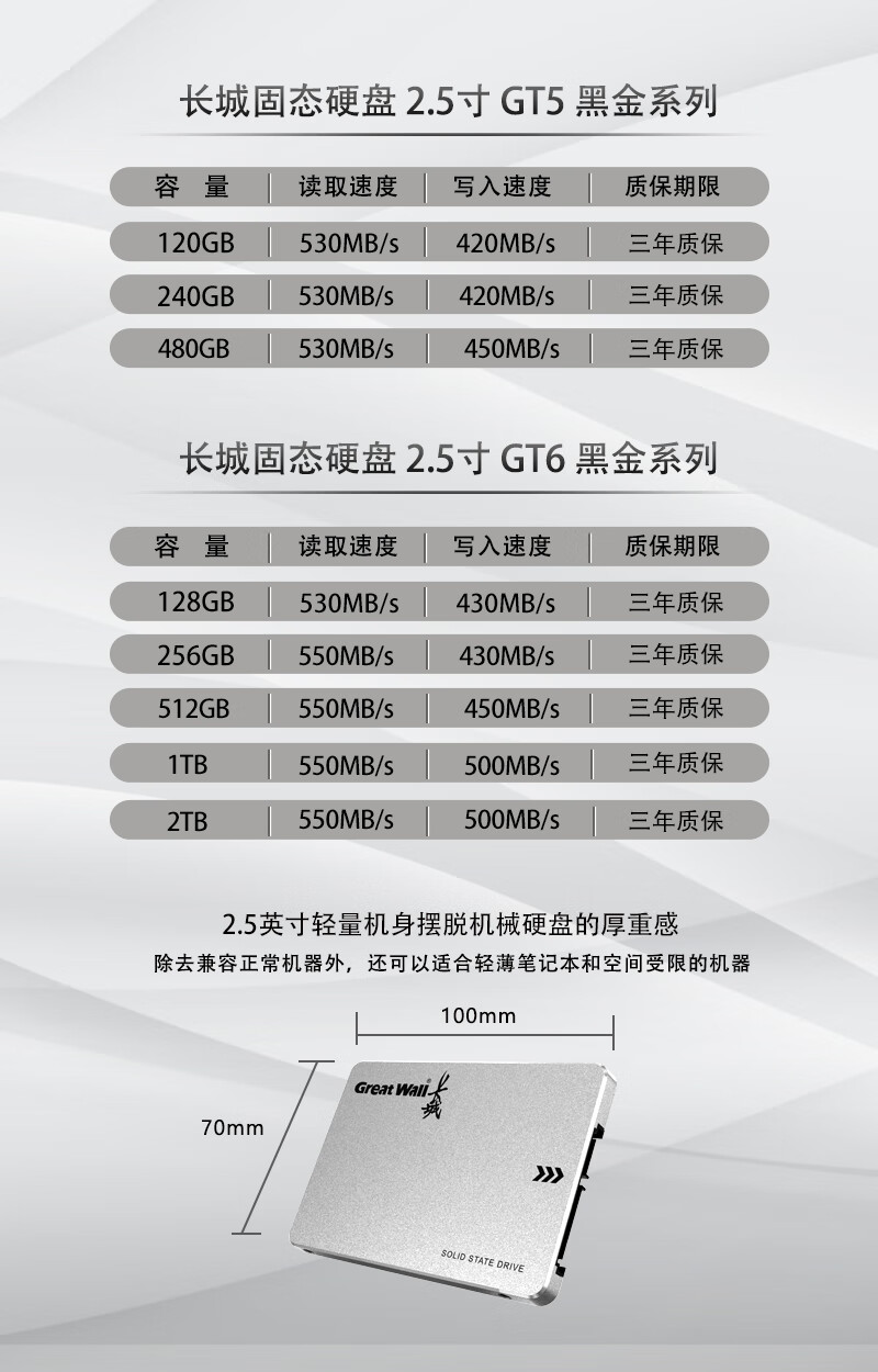 長(zhǎng)城(Great Wall)GT黑金系列 SSD固態(tài)硬盤 SATA3.0接口臺(tái)式機(jī)筆記本固態(tài)硬盤 GT6 旗艦版 1TB 黑金SATA3.0 自營(yíng)