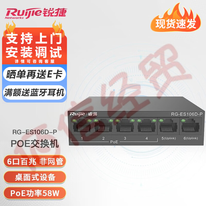 銳捷(Ruijie)RG-ES100系列非網(wǎng)交換機(jī) 安防監(jiān)控交換機(jī) POE供電 RG-ES106D-P 5口百兆 自營(yíng)