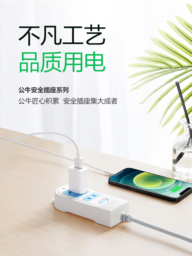 公牛插座公牛插排不帶線無線插排自行接線家用接線板無線排插 總控4位【414K】