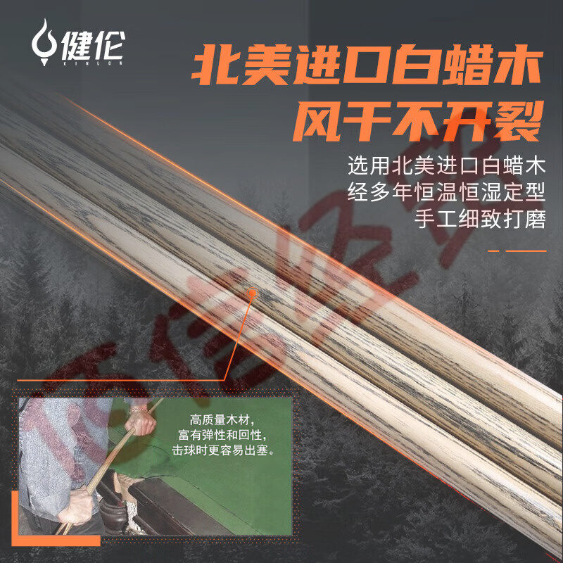 健倫會(huì)員臺(tái)球桿 黑八球房專用公桿 16彩小頭桌球桿 10.5MM JLAB209 自營
