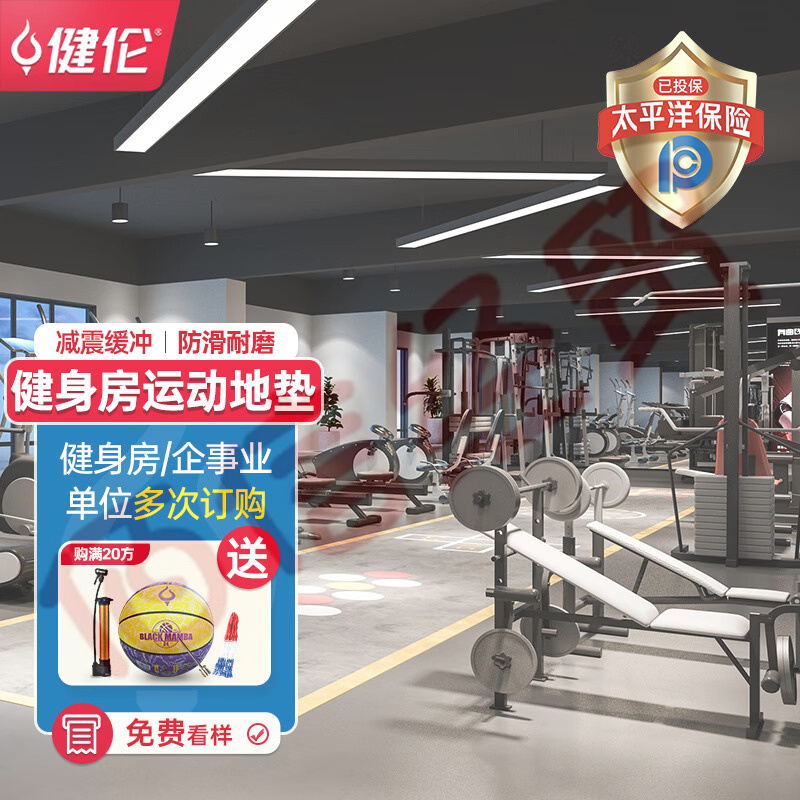 健倫健身房地墊家用商用防滑減震隔音緩沖地板50*50*1.5平底款 自營