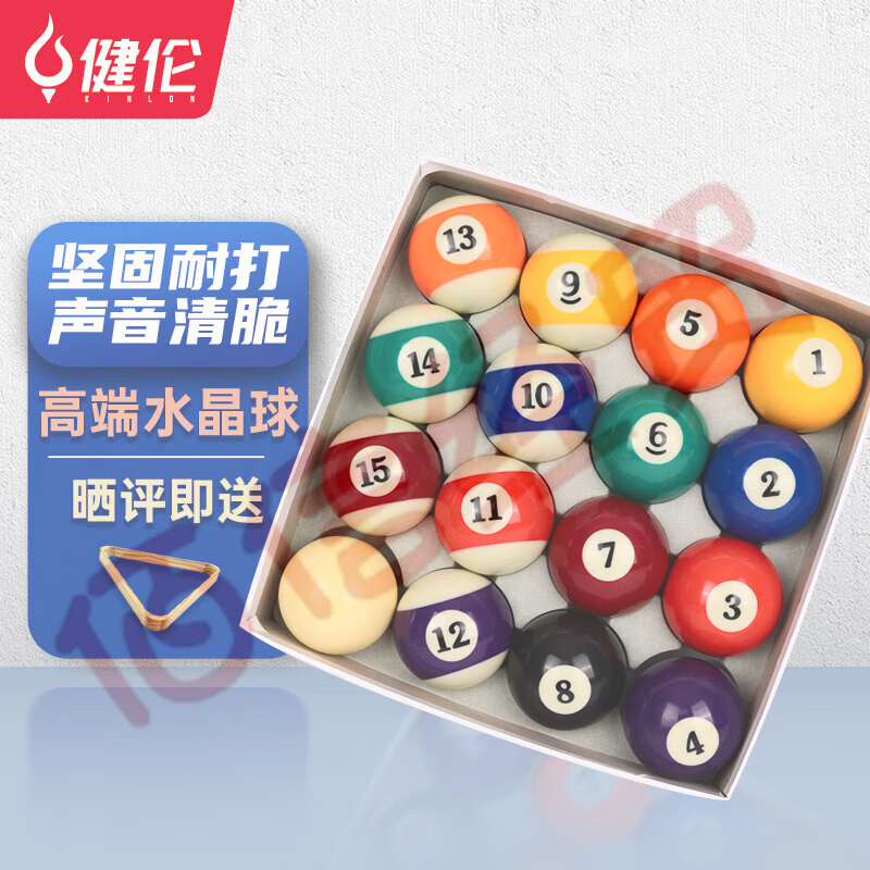 健倫臺球桌球黑8臺球子水晶球美式十六彩大號桌球樹脂球57.2mmJL-TQ01 自營
