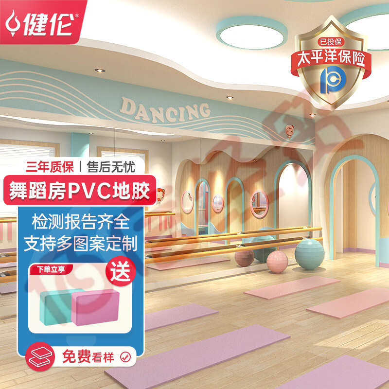 健倫舞蹈室專用地膠墊幼兒園舞蹈房地墊室內(nèi)體適能教室專業(yè)pvc地板膠 自營(yíng)