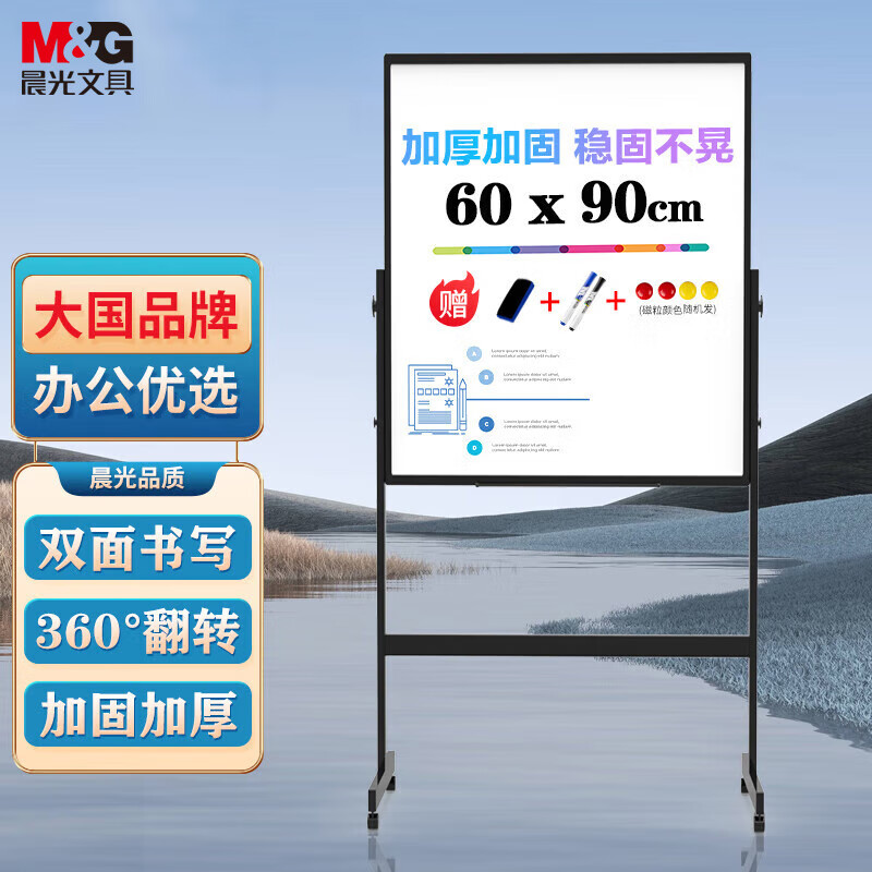 晨光(M&G) 60*90cmH型支架式白板 雙面翻轉(zhuǎn)書寫會(huì)議辦公教學(xué)家用可移動(dòng)升降磁性白板黑板寫字板ADB983T4 自營