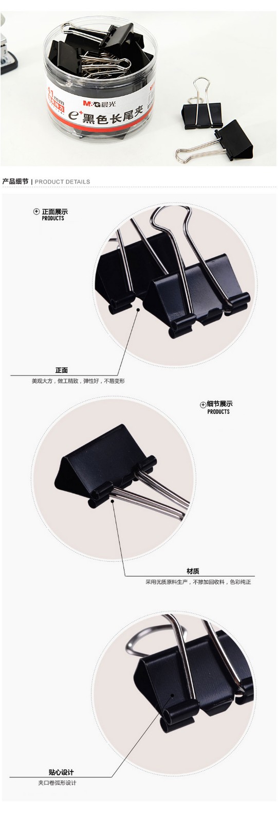 晨光(M&G)長尾夾大號夾子小號多功能書夾子試卷夾燕尾夾鳳尾夾文件夾子文具票夾辦公用品金屬小夾子固定 黑色-25mm(ABS92735)48只 自營