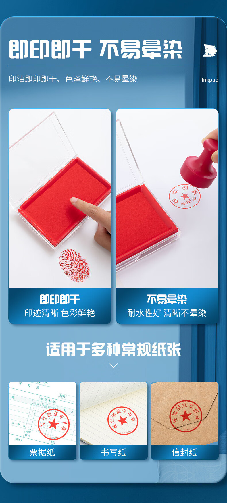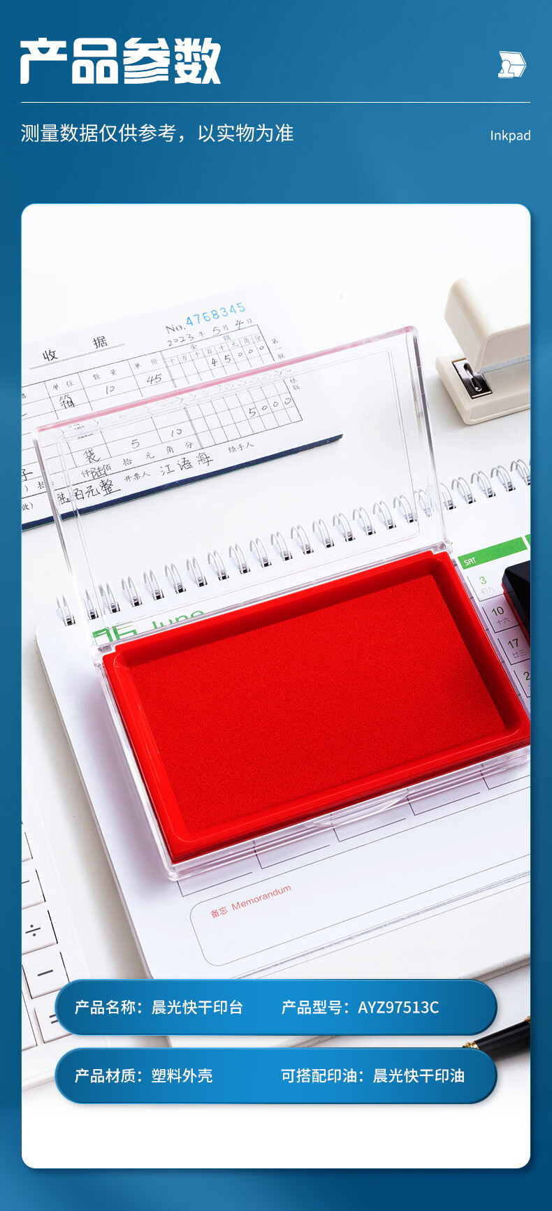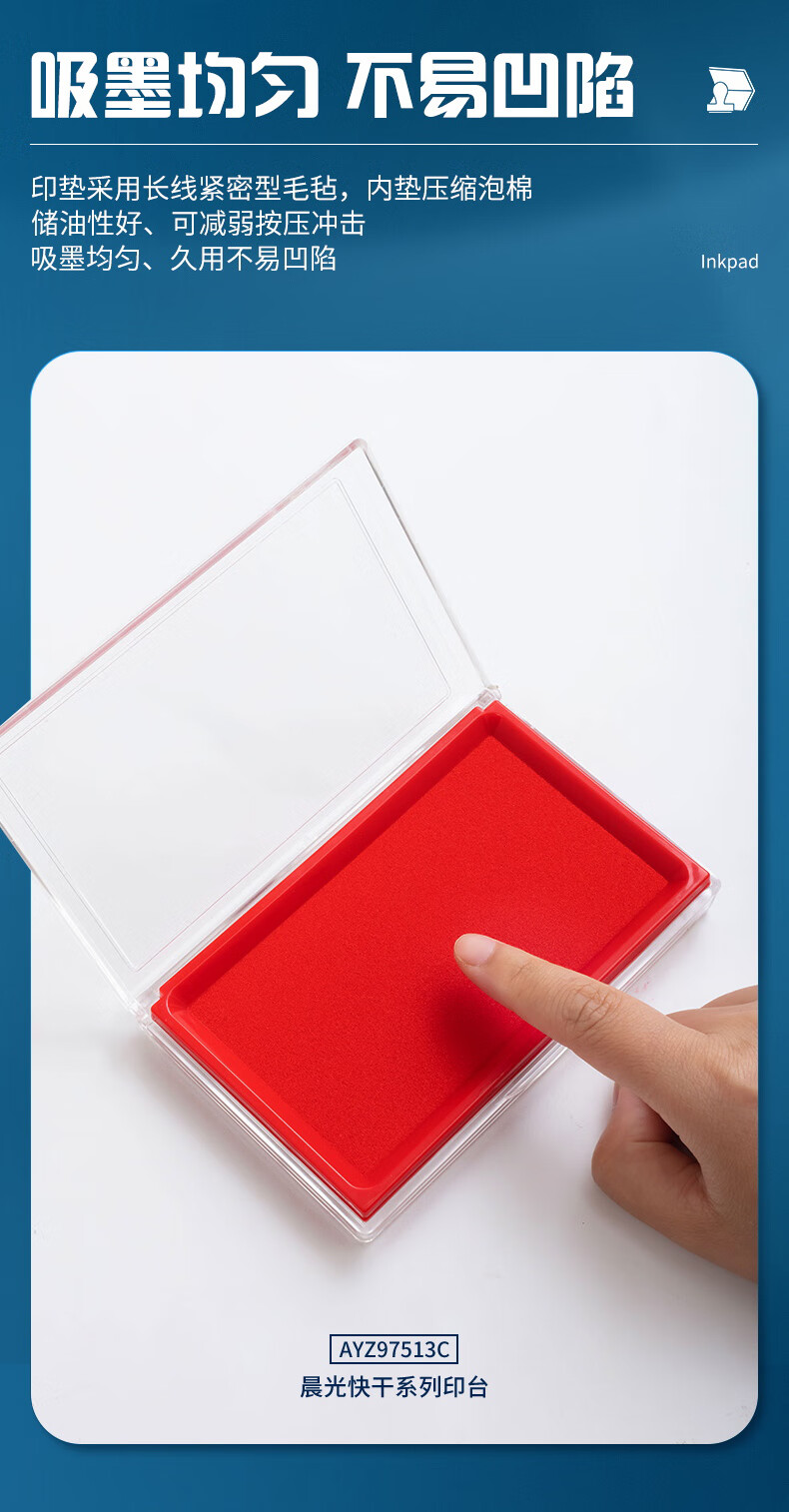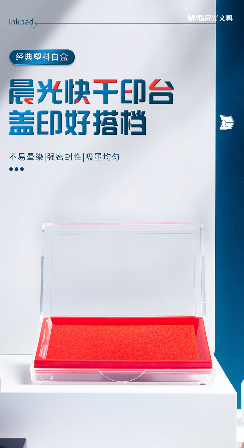 晨光(M&G)文具138*88mm透明外殼方形快干印臺印泥 財務(wù)專用 辦公用品 紅色單個裝AYZ97513 自營