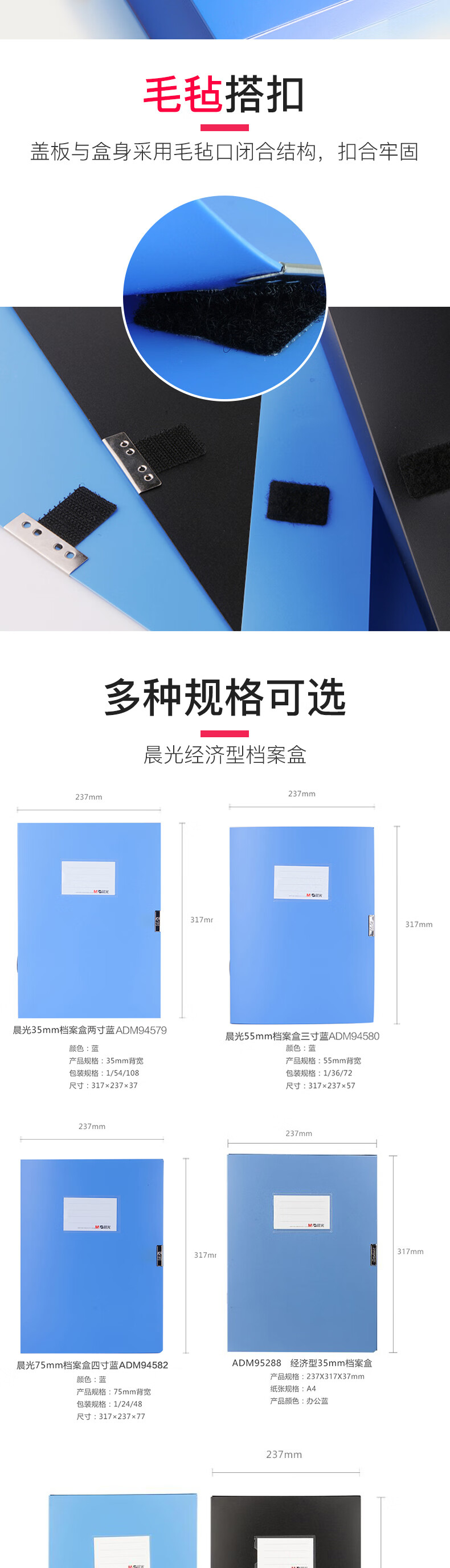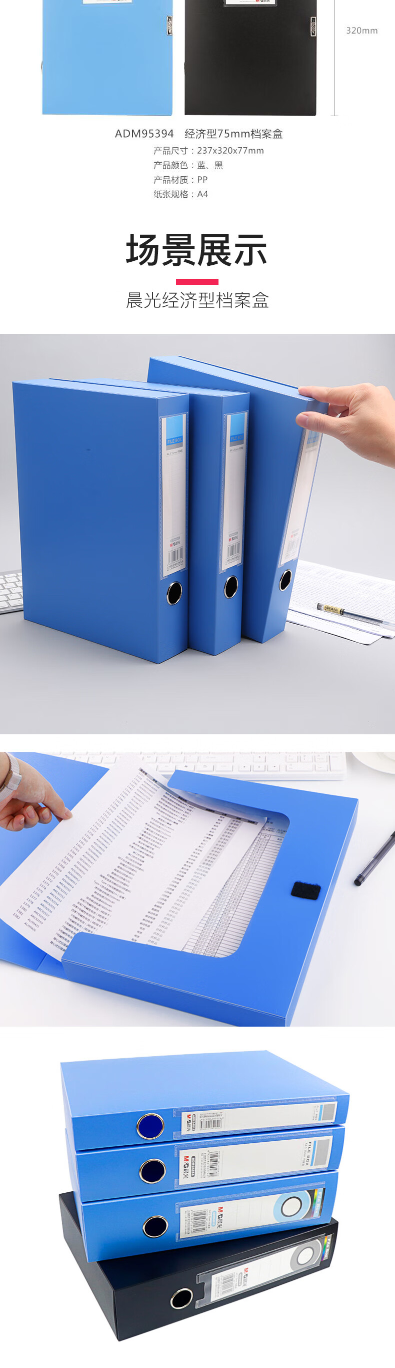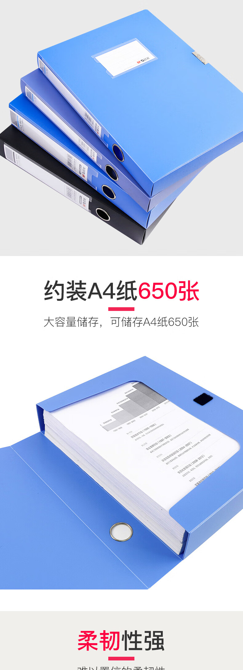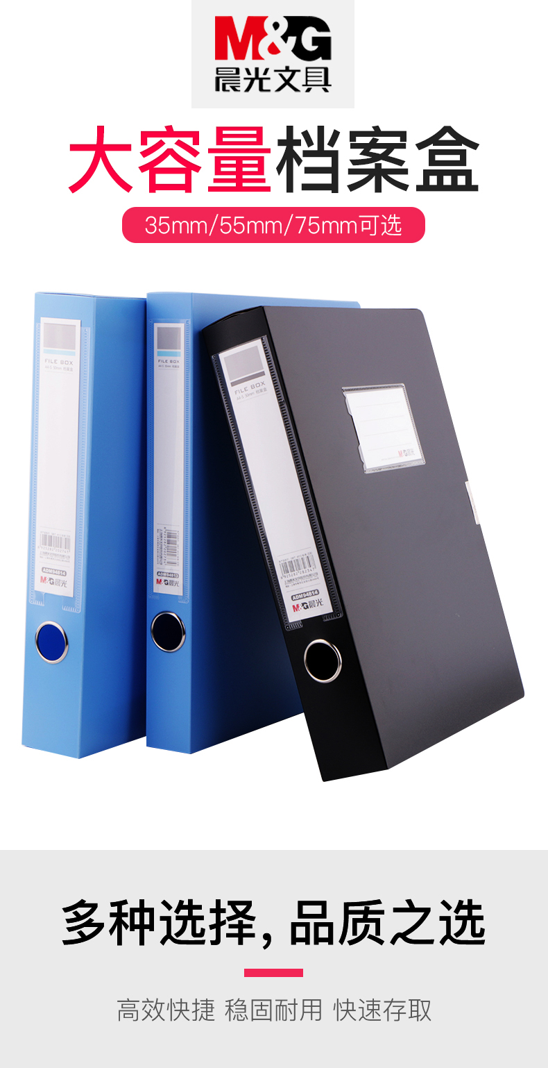 晨光會計(jì)憑證檔案盒塑料辦公合同資料收納盒自粘A4文件盒干部人事檔案財(cái)務(wù)憑證盒資料盒獎狀證書收集冊 ADM94818(75mm)藍(lán)色1個 自營