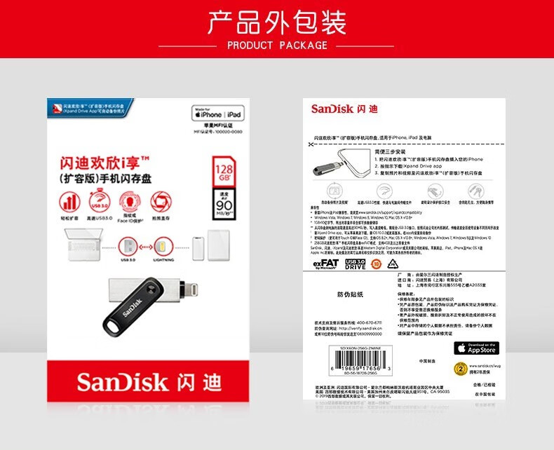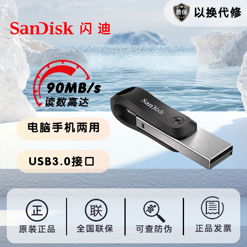 閃迪(SanDisk) 256GB Lightning USB3.1 蘋果手機(jī)U盤 iXpand欣享 iX60歡欣i享 128GB 自營