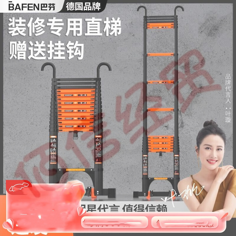 巴芬伸縮梯多功能梯子家用梯人字梯加厚鋁合金工程梯升降直梯折疊樓梯 單面直梯3.9米【靠墻使用+掛鉤】 自營