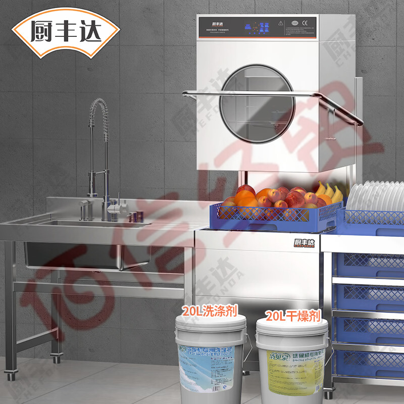 廚豐達(dá) 長龍式洗碗機商用 全自動大型刷碗機飯店食堂酒店廚房高溫殺菌烘干 6.2米雙缸雙噴淋雙烘干(其它型號咨詢客服) 自營