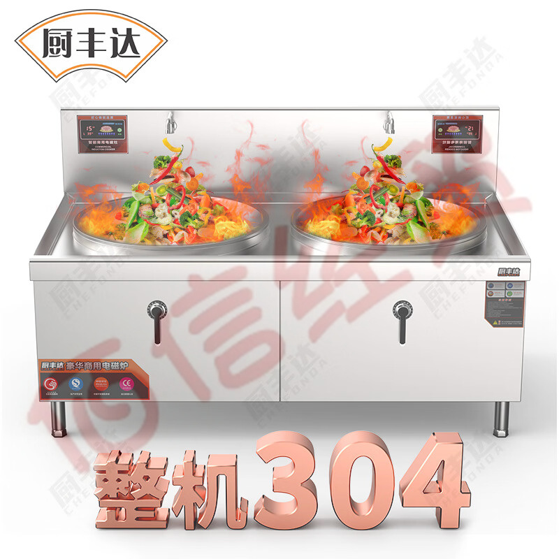 廚豐達(dá) 大功率商用電磁爐 304商用電磁灶大鍋灶學(xué)校單位食堂專用猛火電炒鍋電磁電灶臺(tái)30kw*2 一價(jià)全包(其它型號(hào)咨詢客服) 自營(yíng)