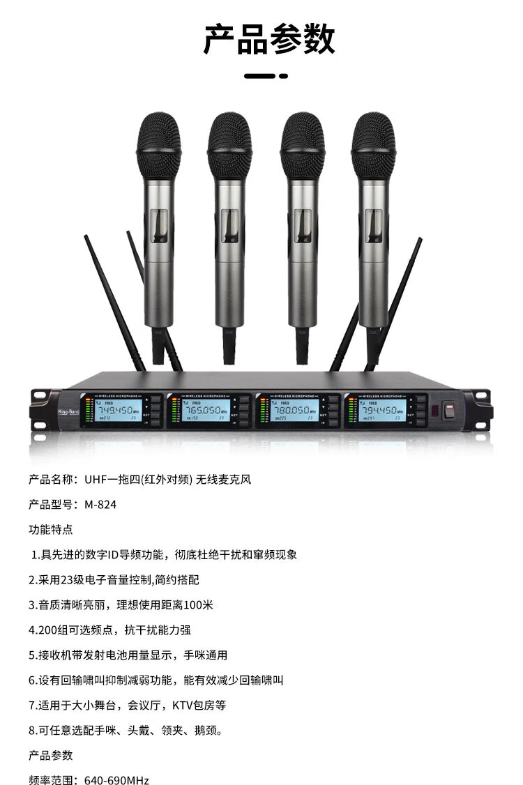 King-Bang京邦M-824UHF一拖四紅外對頻無線麥克風(fēng) 自營