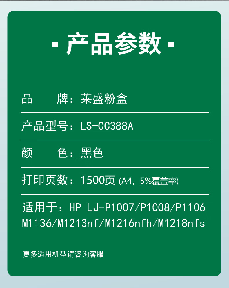 萊盛LS-CC388A硒鼓黑色適用于HPLJ-P1007/P1008/P1106/P1108/M202,M1136/M1213nf/M1216nfh 自營