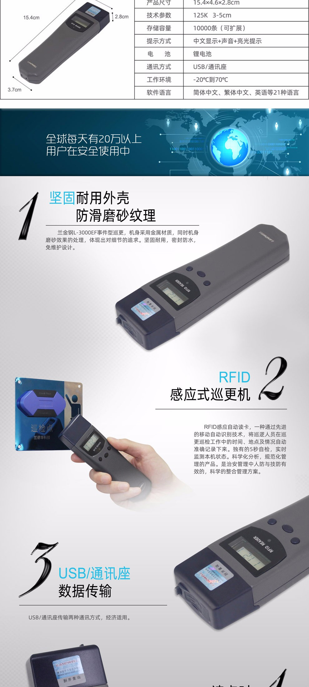 槨俊巡更棒--L-3000EF保安巡邏打點器巡更機巡更器巡檢儀電子巡更系統(tǒng)巡蘭德華云巡6實時照明巡更機4G手機微信查看保安巡更