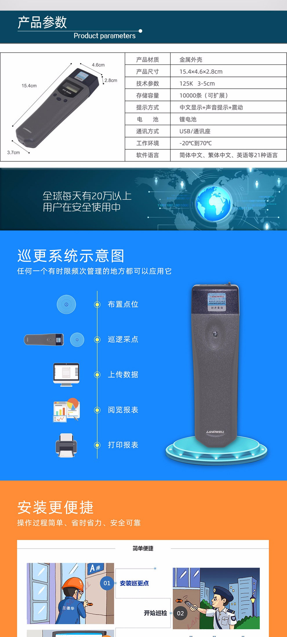 ¥1289.00蘭德華(LANDWELL)Landwell/蘭德華智能電子巡更系統(tǒng)新款巡查者3保安打點(diǎn)巡更棒巡查者3(中文)
