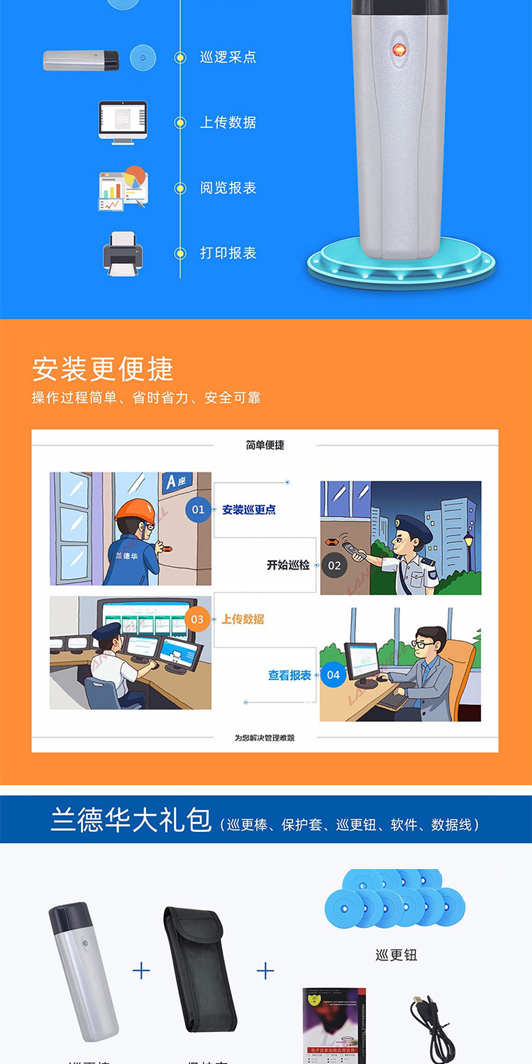 蘭德華電子巡更系統(tǒng)打點器安保巡更棒巡更儀巡更機(jī)器巡檢棒巡邏棒L-3000EF-Z 自營