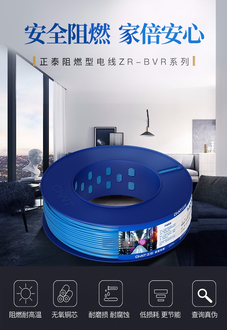 正泰(CHNT)電線電纜電源阻燃銅芯多芯銅線多股家裝軟線10平綠色ZR-BVR100米 自營