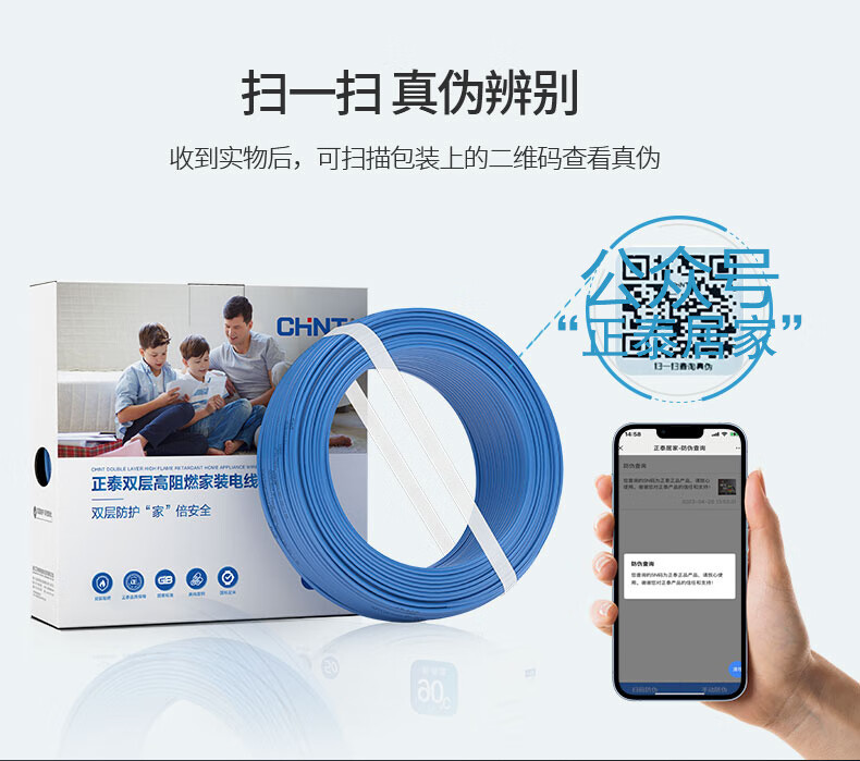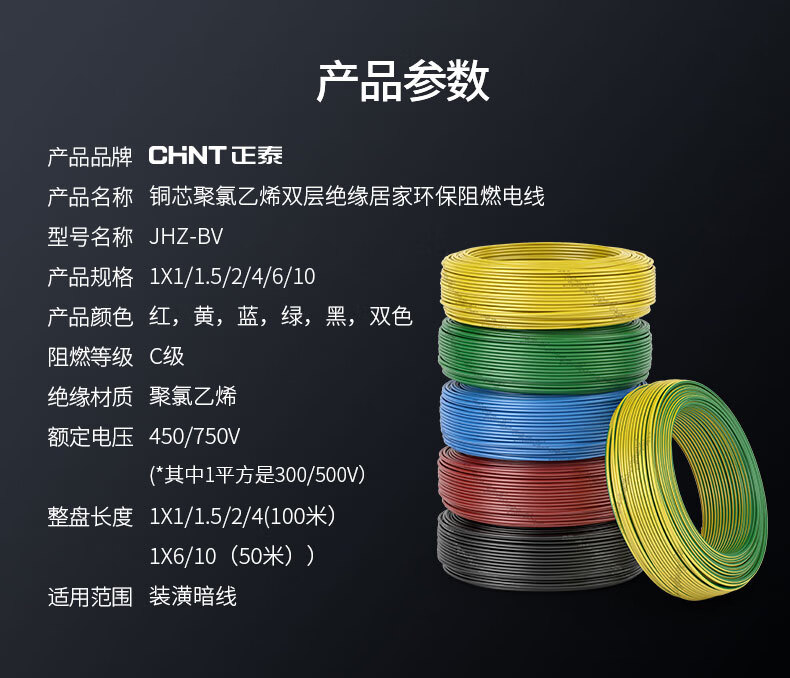 正泰(CHNT)電線電纜JHZ-BV10平方50米雙層絕緣環(huán)保阻燃國(guó)標(biāo)家裝銅芯硬線(其它型號(hào)咨詢(xún)客服) 自營(yíng)