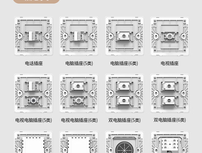墻壁插座一位電話插座86型面板白色阻燃面板+電話模塊